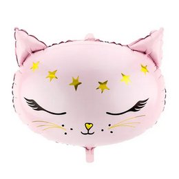 Mosolygós Pink Arany Cica Fej Fólia Lufi