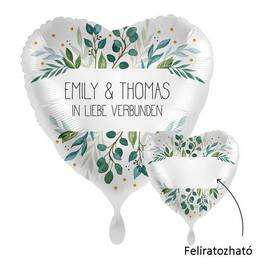 18 inch-es Elegáns Zöld Levél Mintás Feliratozható Szív Fólia Lufi