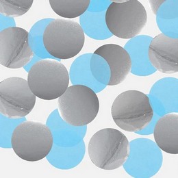 A csomag 10 gramm kerek konfettit tartalmaz. A csomagban vegyesen található fényes ezüst színű konfetti és pasztel kék színű konfetti is.