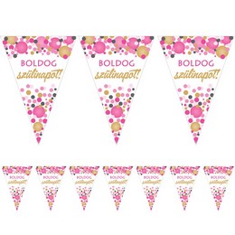 Boldog Szülinapot! Rózsaszín Pasztell Konfettis Zászlófüzér
