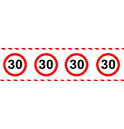 Sebességkorlátozó tábla mintázatú műanyag szalag.