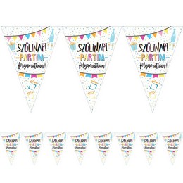 A csomag tartalma: 12 db zászló, egy 5 m hosszú fehér szalag.